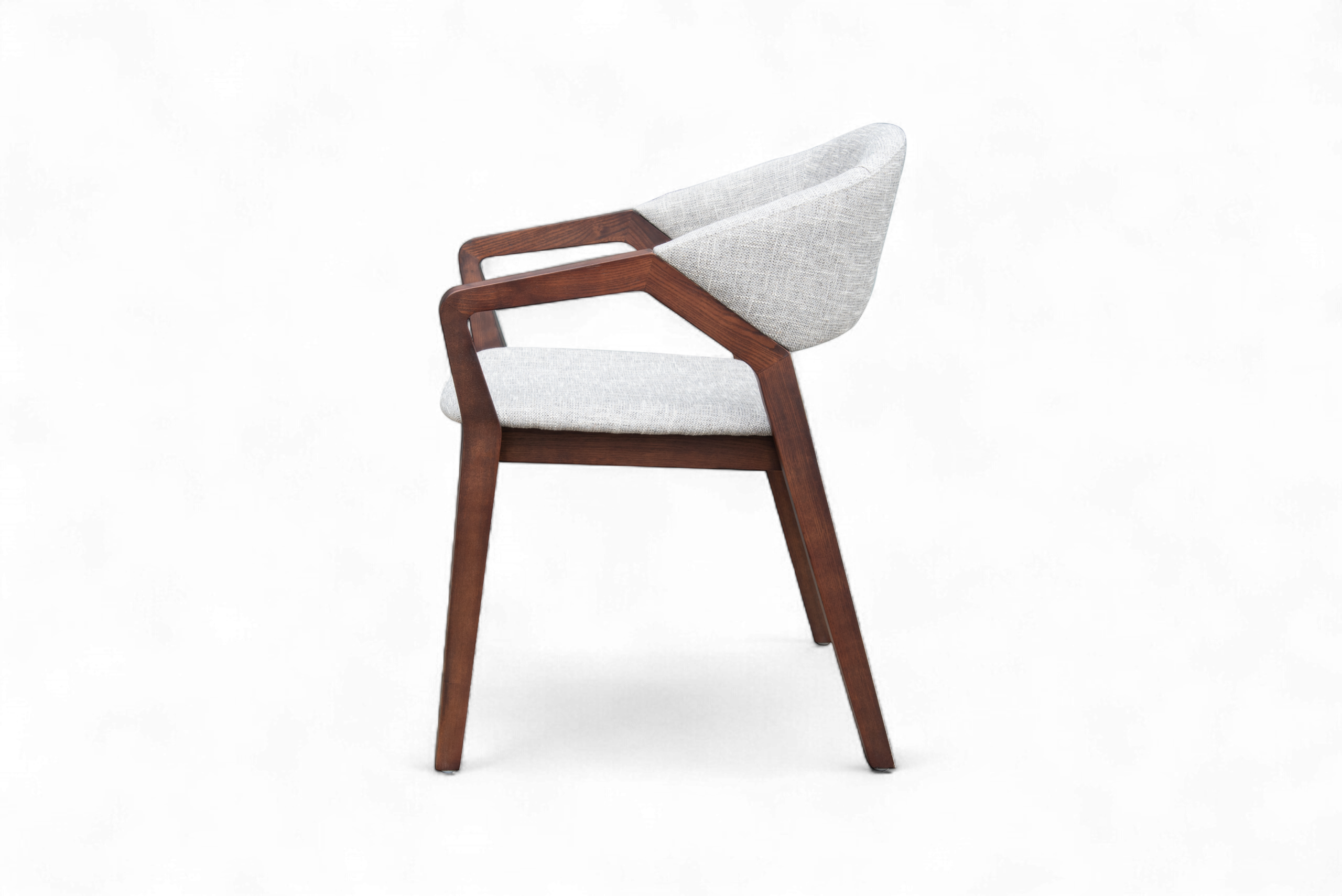 Bring a cozy, modern touch to any room with this dining chair. The rich dark ash wood frame pairs beautifully with soft light-gray linen, creating a warm yet contemporary look. Its curved backrest and armrests are designed to support your posture and provide lasting comfort, while the sturdy construction ensures everyday durability. Ideal for dining rooms, breakfast nooks, or a comfortable reading corner—simple style that makes your home feel inviting.
